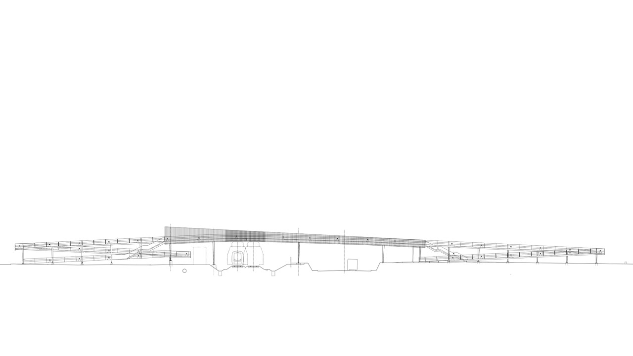 Auf Grund der beengten Verhältnisse und der erforderlichen Abwicklungslänge der Rampen sind diese gegenläufig und teilweise übereinander angeordnet. Die Rampen bestehen aus Teilstücken mit 6,00 m Länge bei 6 % Gefälle und Zwischenpodesten von 1,50 m Länge, wodurch sich ein Gesamtgefälle des tragenden Stahlquerschnitts von 4,8 % ergibt.