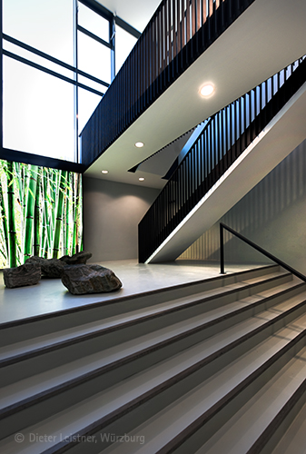 Der Neubauschritt erfolgte ohne Beeinträchtigung des Bestands. Darüber hinaus wurde der bestehende Versandbereich betriebsgerecht neu strukturiert. Der langfristige Vollausbau wird die Chancen der Konzeption aufzeigen: Der Montagebereich rückt an AKL und Spritzguss. Mehrere Montagelinien unter Reinraumbedingungen werden möglich, zukünftige Entwicklungen sind denkbar.