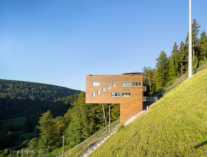 Rund 12 Jahre nach Errichtung der richtungweisenden Skisprungschanze in Willingen wurde der schwindelerregende Sprungrichterturm von PWP hinzugefügt, um den Anforderungen der FIS gerecht zu werden.