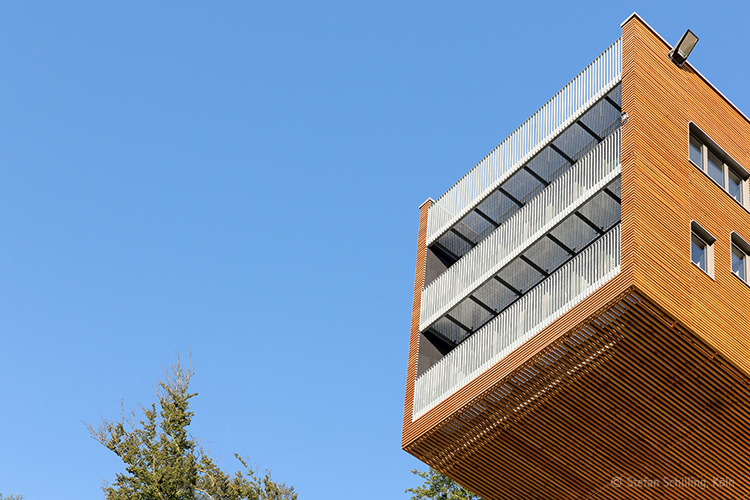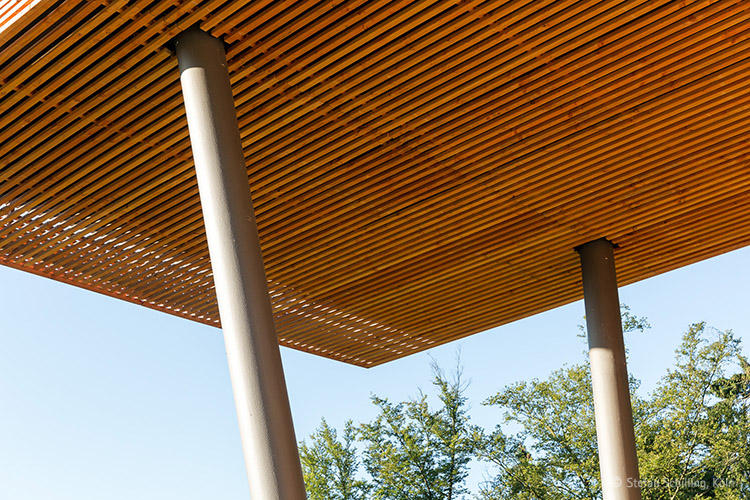 Auch wurden Umweltbelange Gegenstand des konzeptionellen Ansatzes: Die Bekleidung des Bauwerks ist wiederum mit Lärchenholz. Die Einstandsfläche in den Hang ist minimiert. An der Unterseite wurden Kästen für Fledermäuse integriert. Die „Flugbereitschaft ist also in jeglicher Form“ sichergestellt.