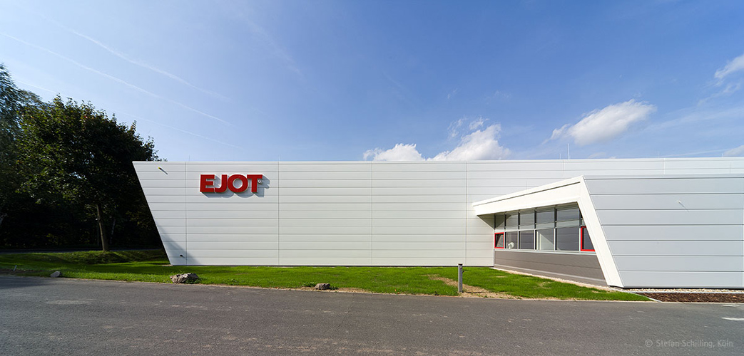 Die Dynamik des Gebäudes steht möglicherweise auch für die dynamische Unternehmensentwicklung von EJOT. Die Dachflächen des Neubaus wurden mit Dünnschicht-Photovoltaikelementen auf einer Fläche von ca. 1.150 m² belegt, was zu einer Einspeiseleistung von 99,5 KW peak führt. Der erzeugte Solarstrom vor Ort wird in das Energienetz des Produktionsbetriebes eingespeist.