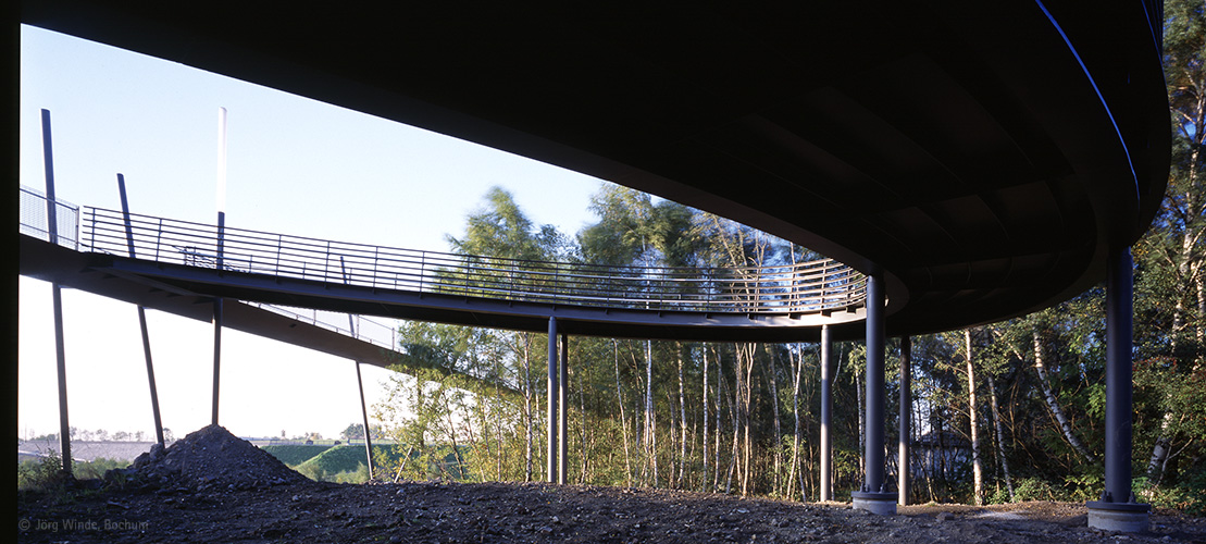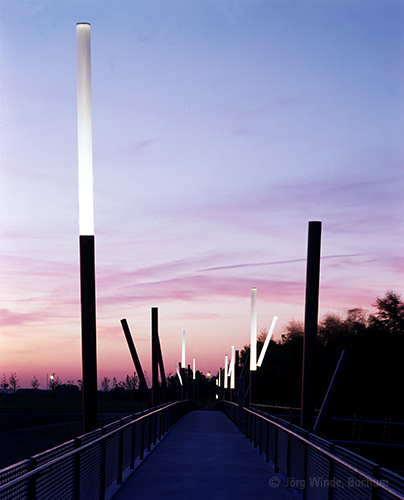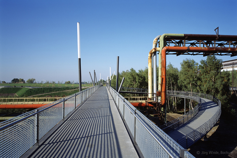 Im Rahmen der Umgestaltung und Nachnutzung des ehemaligen Industrieareals 'Bochum Innenstadt-West' mit Traditionsfirmen wie dem Bochumer Verein, wurde im Zuge der IBA-Emscher Park von PWP eine 220m lange Stegbrücke errichtet, welche wesentlicher Bestandteil eines Rundweges (Erschließung des neuangelegten Westparkes - rund um die Jahrhunderthalle) wurde.