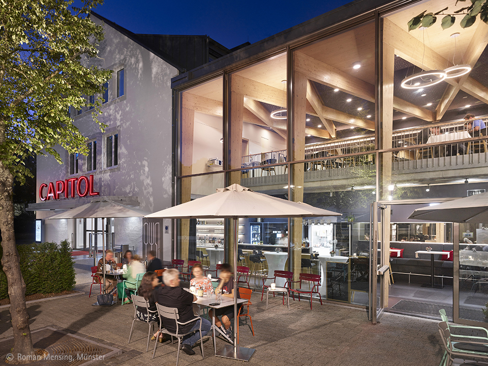 So soll es auch in Zukunft bleiben. Das Capitol-Kino wird baulich durch ein Restaurant mit einer Außengastronomie sowie einem Hotel im Dachgeschoss ergänzt.