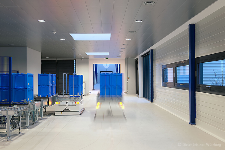 Der Neubauschritt erfolgte ohne Beeinträchtigung des Bestands. Darüber hinaus wurde der bestehende Versandbereich betriebsgerecht neu strukturiert. Der langfristige Vollausbau wird die Chancen der Konzeption aufzeigen: Der Montagebereich rückt an AKL und Spritzguss. Mehrere Montagelinien unter Reinraumbedingungen werden möglich, zukünftige Entwicklungen sind denkbar.
