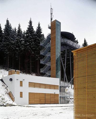 Die grundlegende Erneuerung der Großschanze Willingen (Mühlenkopfschanze) umfasste deshalb neben dem Neubau des Schanzenbauwerkes die Aufsprungbahn, die Neugestaltung der Zuschauerbereiche, die Erstellung von mechanischen Aufstiegshilfen und Funktionsräume. Kern der hochbaulichen Maßnahmen ist das wettkampfgerechte Schanzenbauwerk mit einem neuen Anlaufturm, welches als filigranes Stahltragwerk in die landschaftlich anspruchsvolle Situation integriert wurde und zahlreiche technische Einbauten bis hin zu einer mechanischen Schneepräparierung aufweist.