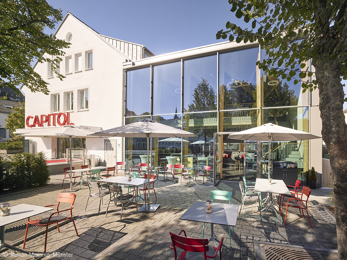 So soll es auch in Zukunft bleiben. Das Capitol-Kino wird baulich durch ein Restaurant mit einer Außengastronomie sowie einem Hotel im Dachgeschoss ergänzt.